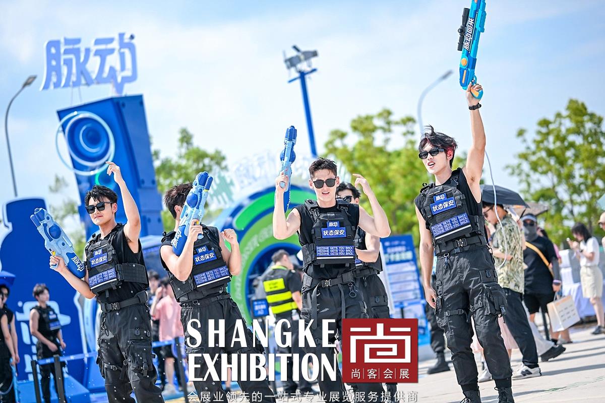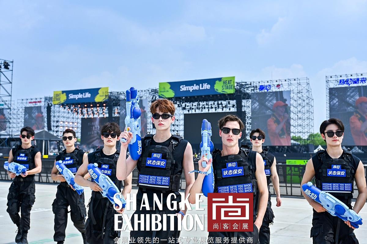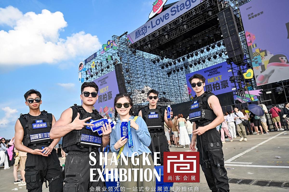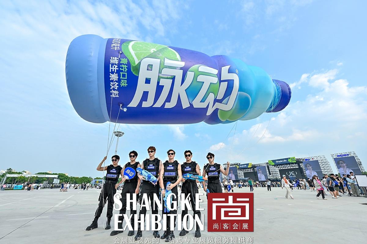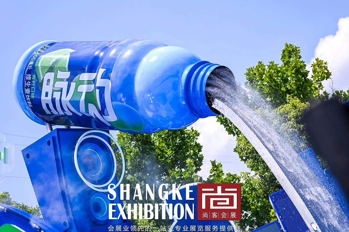 本次美陈活动设计项目旨在为音乐节增添独特的视觉体验和互动乐趣,让每一位参与者都能沉浸在音乐与欢乐的海洋中。以脉动品牌的经典蓝色和草莓音乐节的活力绿色为主色调,营造出清新、动感的氛围。 设计了多个互动装置,如巨型脉动水瓶造型的喷水装置,让参与者在炎热的夏日中感受到清凉与活力。通过大型脉动瓶子和品牌口号的展示,强化品牌形象,提升品牌认知度。设置多个创意拍照打卡点,鼓励参与者记录下美好瞬间,并通过社交媒体分享,扩大活动影响力。